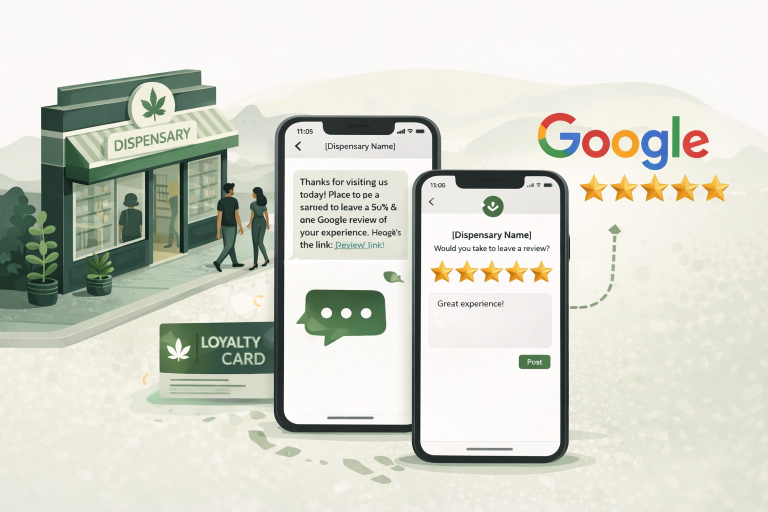 A compliant dispensary SMS review request clearly identifies the business, explains why the message was sent, and provides a single direct link to the Google review page.